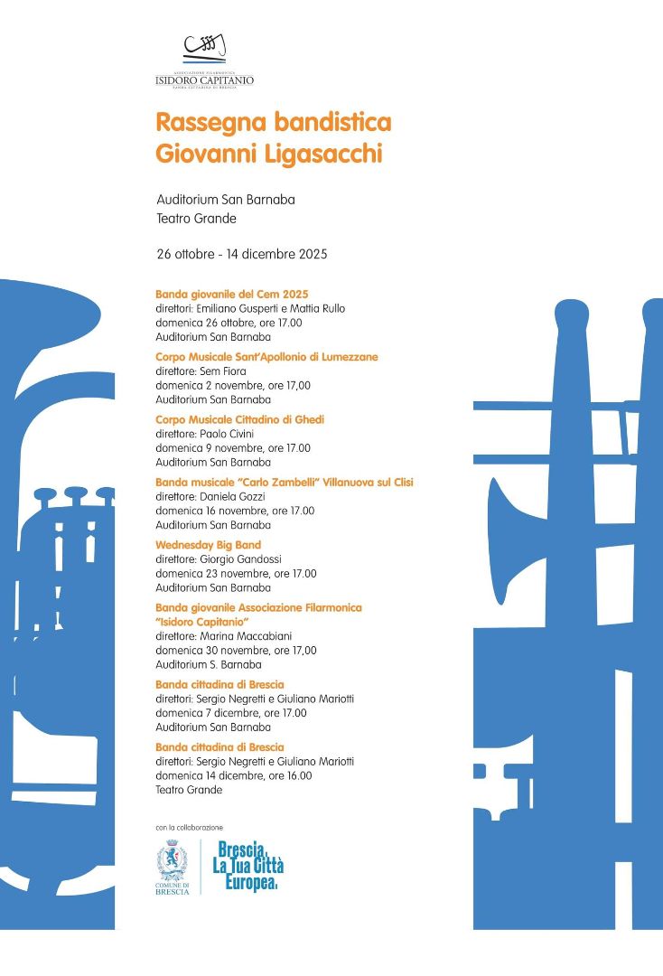 La Rassegna Bandistica "Giovanni Ligasacchi" è giunta alla sua ventitreesima edizione. Anche quest'anno la rassegna si conclude, il 14 dicembre, al Teatro Grande con il concerto dedicato alla cittadinanza della Banda cittadina di Brescia.